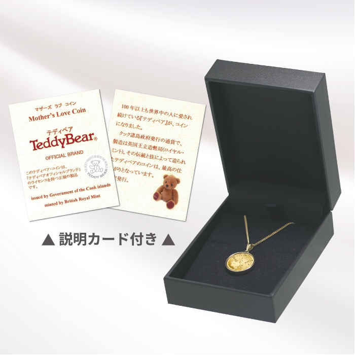 テディベアの毛並みまで繊細に描かれており純金ならではの彩りが、煌びやかに胸元を飾ります