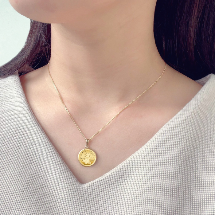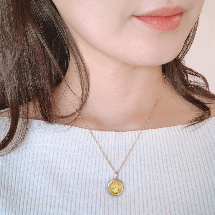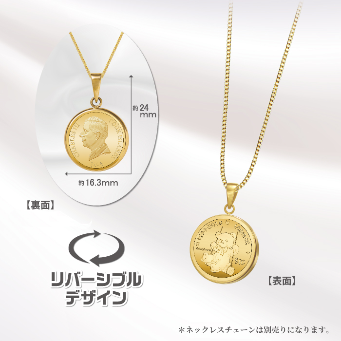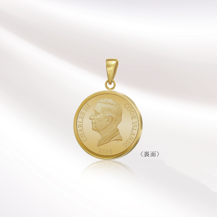 クックアイランズ政府発行の法定通貨、1100年以上の歴史を持ち優れたコイン製造技術を持つイギリスの伝統ある造幣局、ロイヤルミント製造の金貨を使用した金貨ペンダントになります。