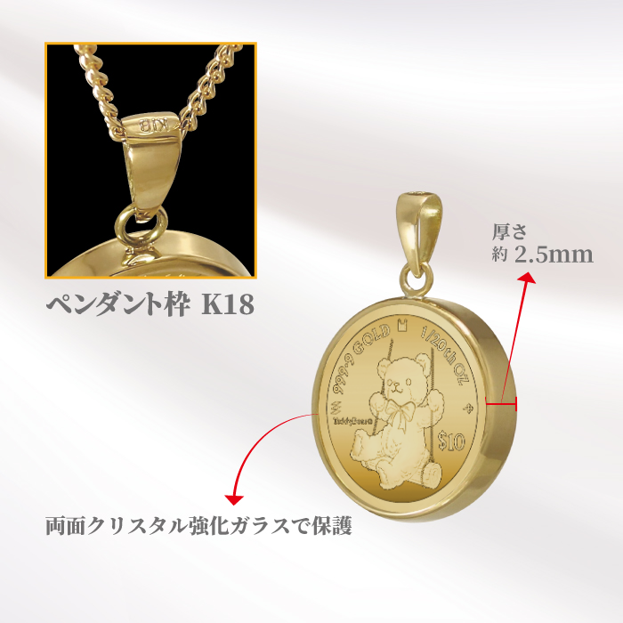 2025 テディベア 1/20オンス純金金貨ペンダント