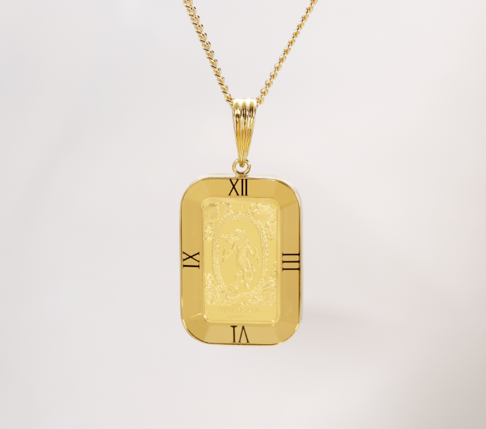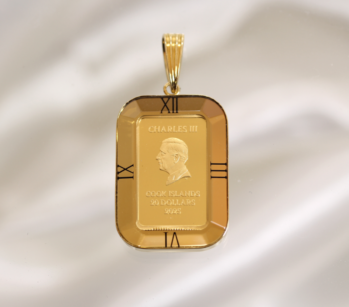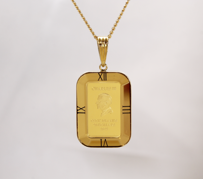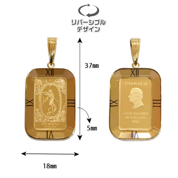 クックアイランズ政府発行の法定通貨、1100年以上の歴史を持ち優れたコイン製造技術を持つイギリスの伝統ある造幣局、ロイヤルミント製造の金貨を使用した金貨ペンダントになります。