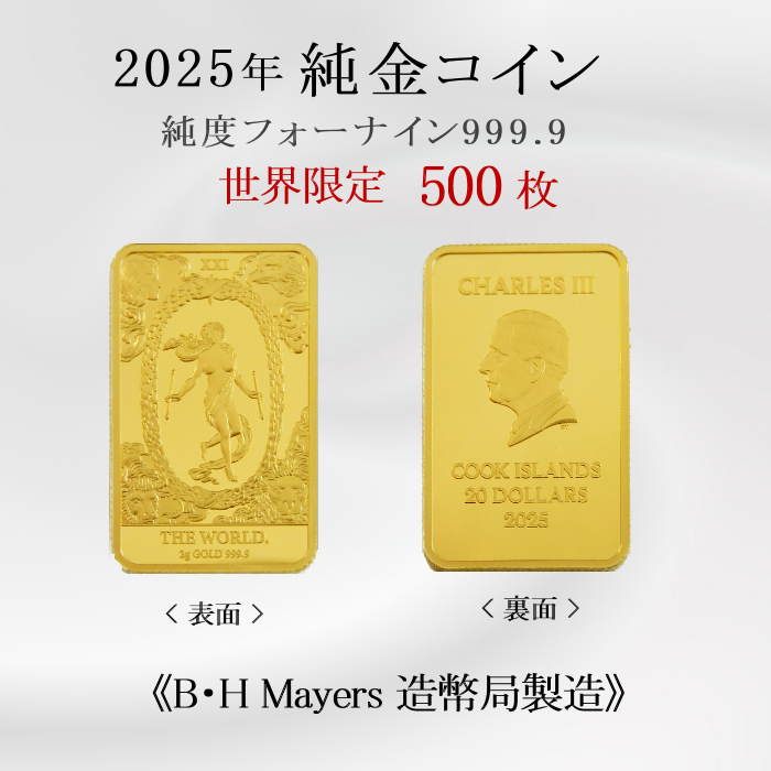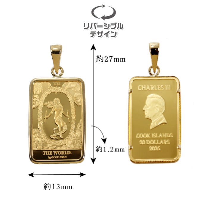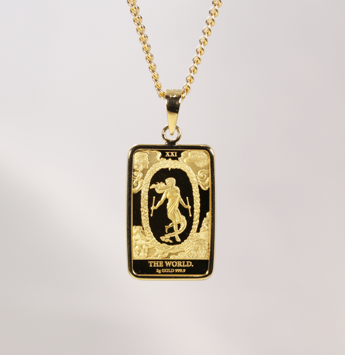 2025 タロットカード「THE WORLD] 純金金貨ペンダント シンプル枠