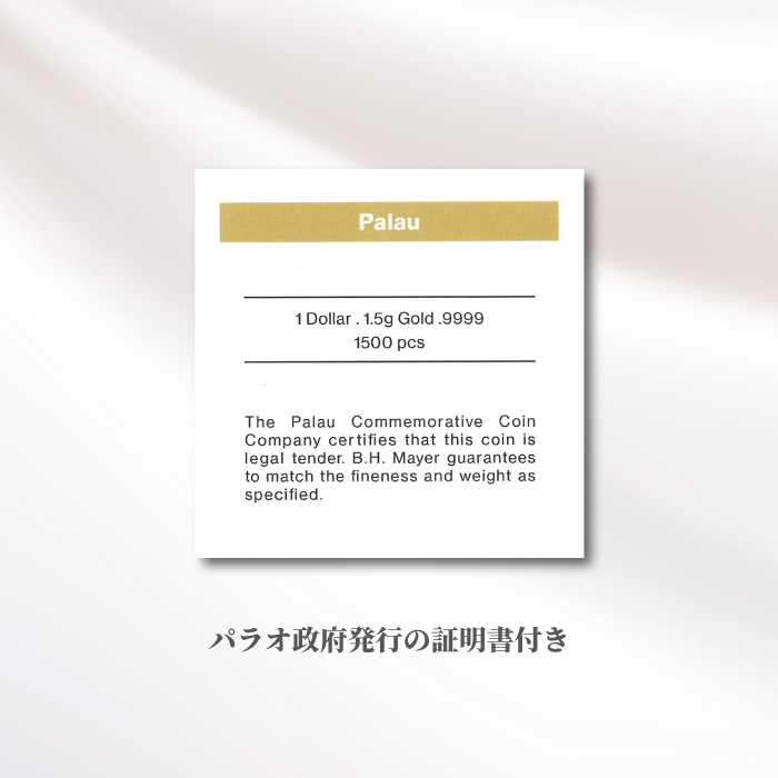 金貨の重量は約1.5g、オーバルという特殊な形状のコインで世界限定1500枚の希少な金貨です。