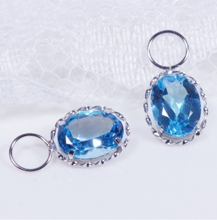 ブルートパーズ スイング チャーム オーバルミックスカット 計2.8カラット (ピアス・イヤリング用) プラチナ  11月誕生石