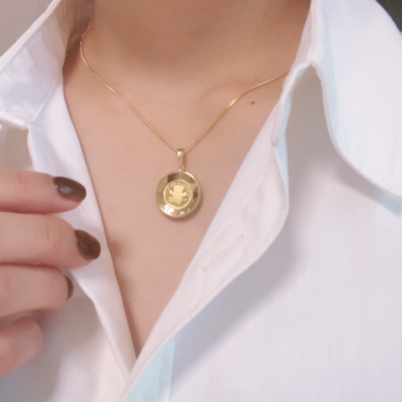テディベアの毛並みまで繊細に描かれており純金ならではの彩りが、煌びやかに胸元を飾ります