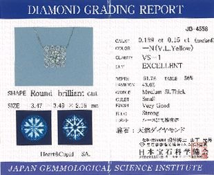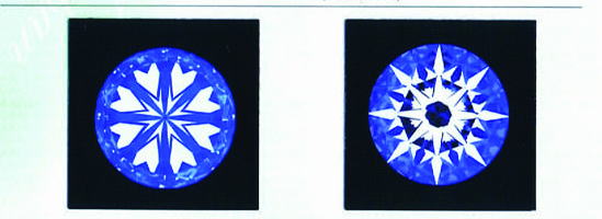 完璧に左右対称に磨き上げられたラウンドブリリアントカットは特殊スコープを使うと表に8本のキューピットの矢、裏には8個のハートが見える大変、希少で美しいものとなります。