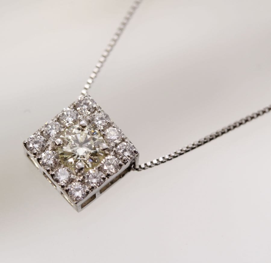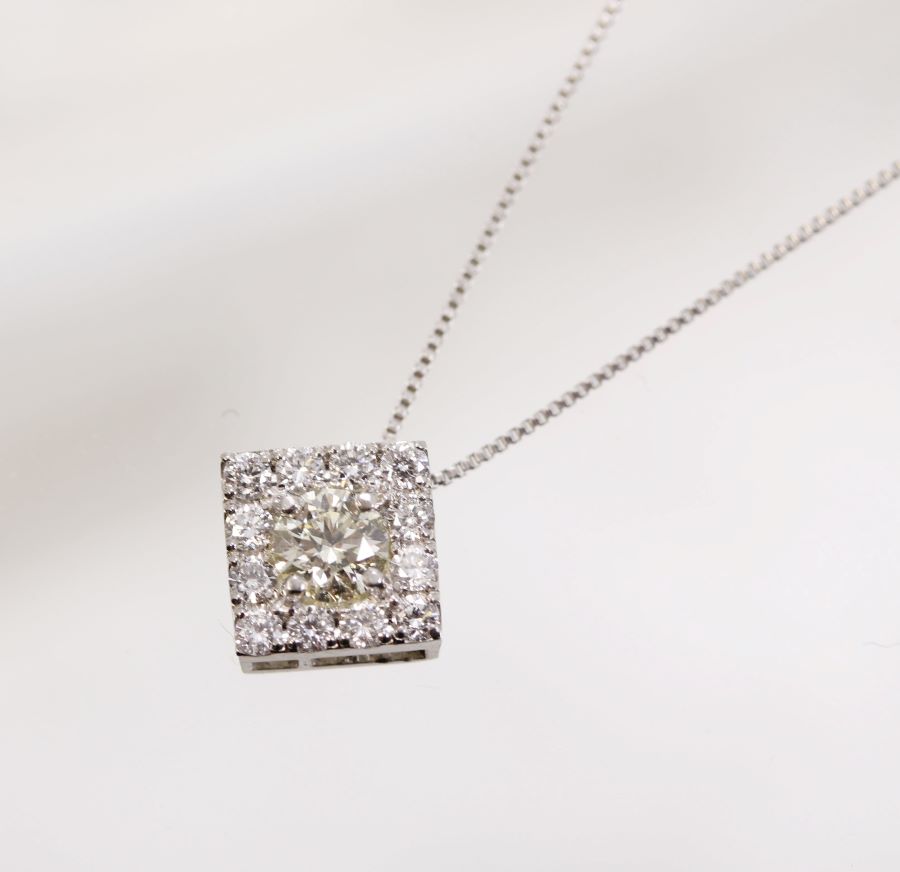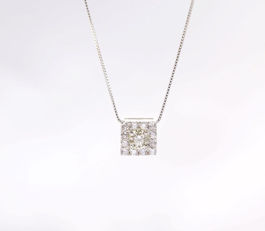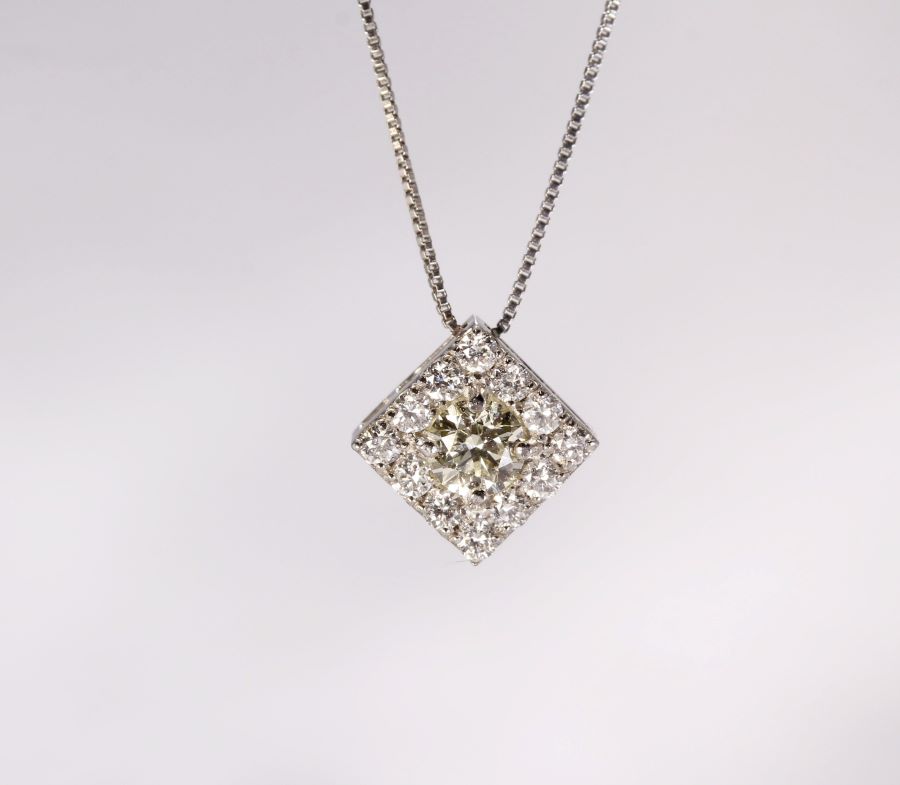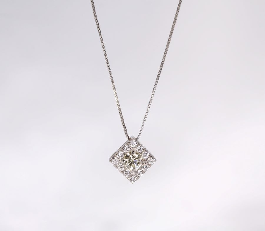 PT0.15カラット高品質VSクラスダイヤスクエアデザインペンダント ネックレス プラチナ