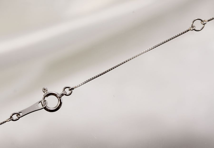 チェーンも同じくプラチナでしなやかで輝きが美しい人気のベネチアンチェーンで長さ42cm、アジャスト管付きになっています。